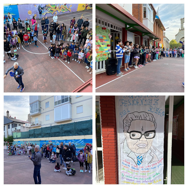 Homenaxeamos a figura de Francisco Fernánadez del Riego ao longo da semana realizando Unidades Didácticas dende Infantil ata 6º de primaria, creamos murais e posters conmemorativos, finalemente levouse a cabo un certame musical e interpretamos o himno galego con ukeleles